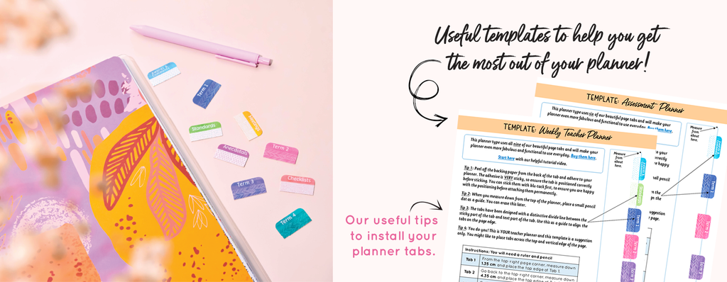 Our planner page tabs are the ultimate planner accessory! Fun and functional, the tabs will help you organise your planner and easily find all the important pages. Download the template to help you attach the tabs to your specific planner type.